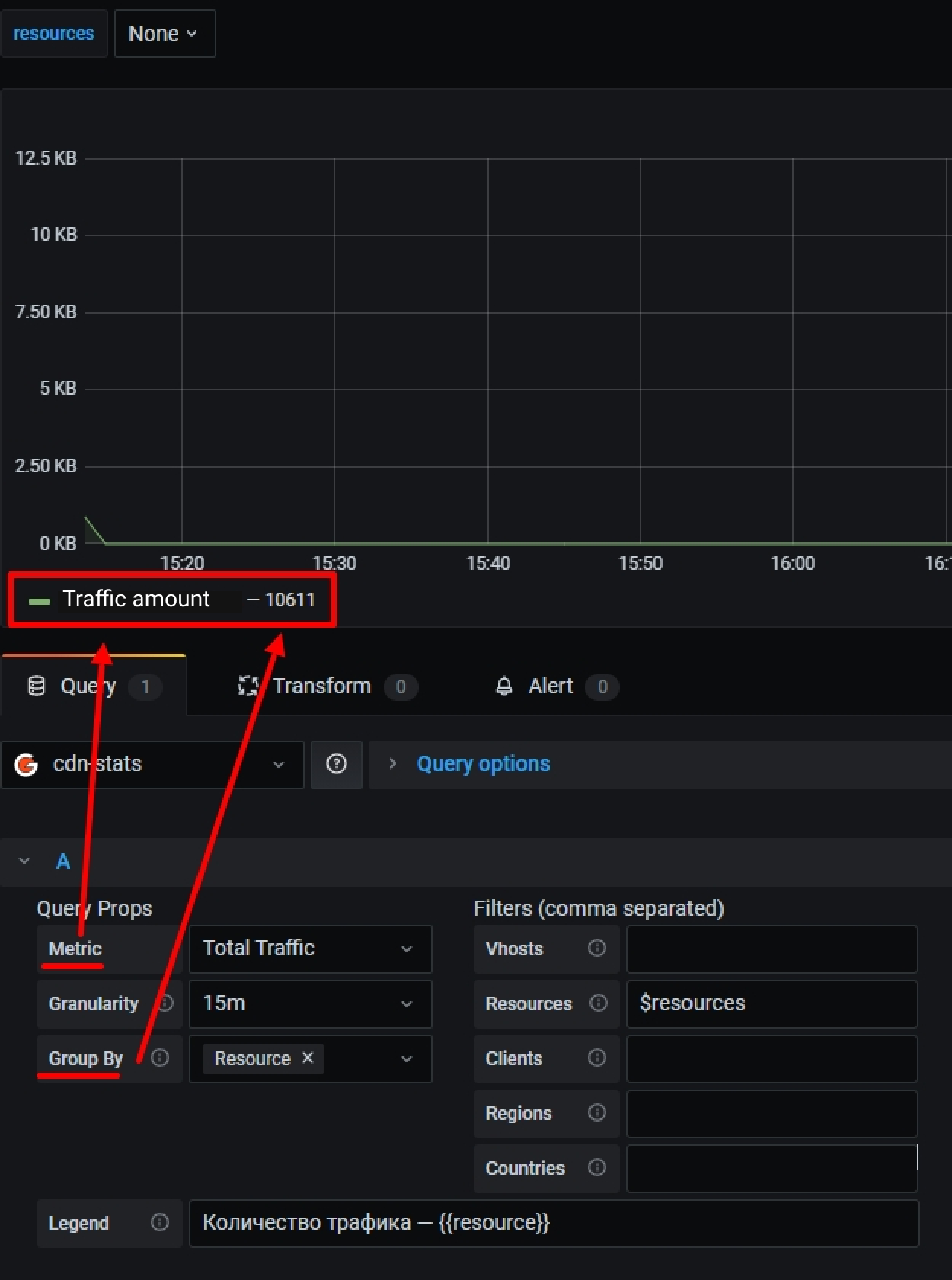 For example, for the settings above, you can set the following format: Traffic quantity — {{resource}}.