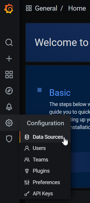 Click the gear icon in the menu to open the "Configuration" section, select "Data Sources".