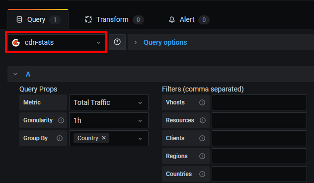 Make sure that "cdn-stats" is set as the data source in the Query section.