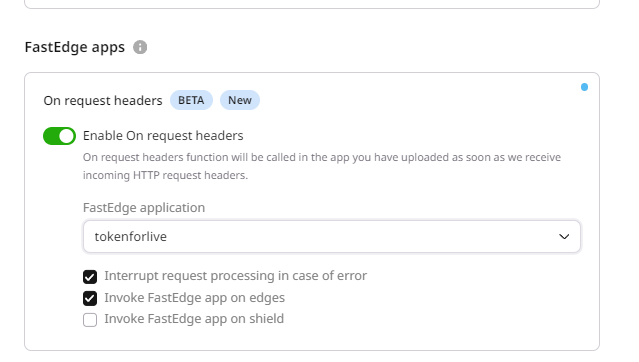 - Click on the FastEdge icon on the left to switch to FastEdge management.