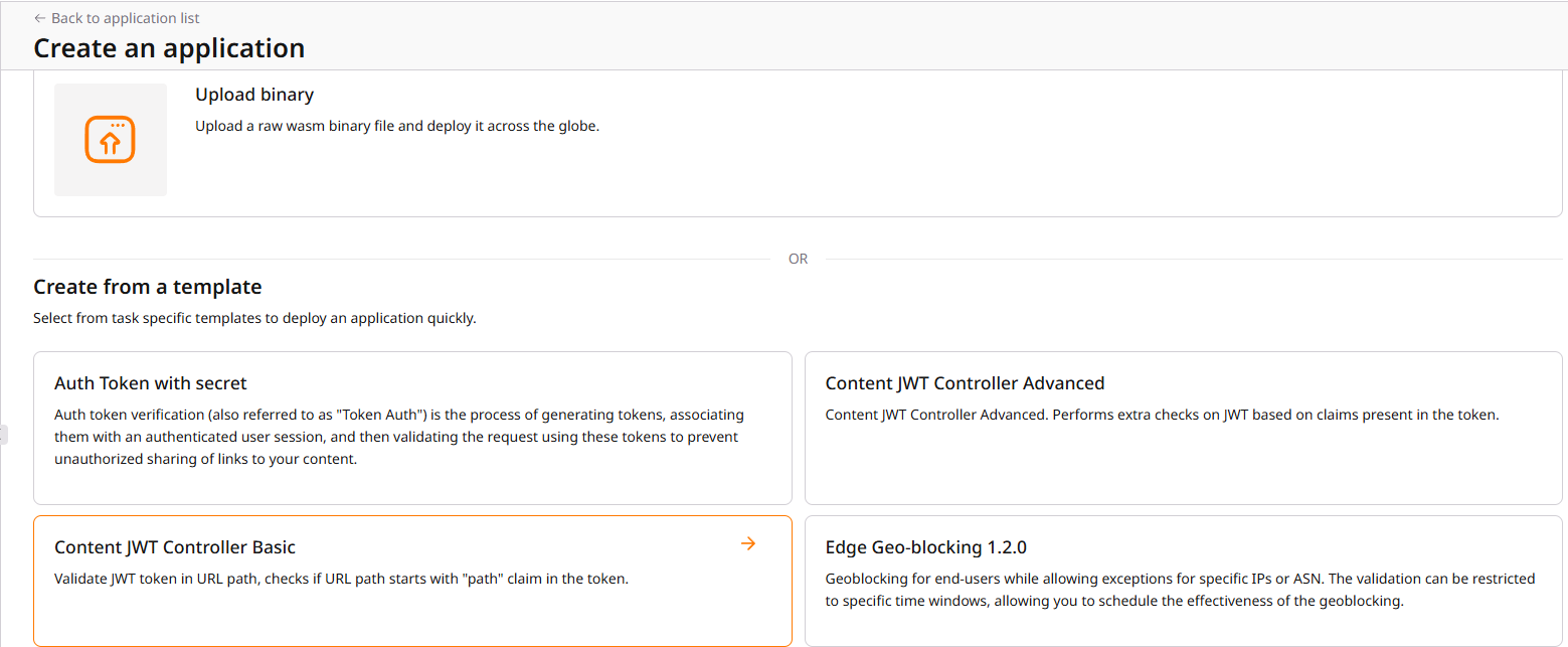 - In the Create from a Template section, click on Content JWT Controller Basic.