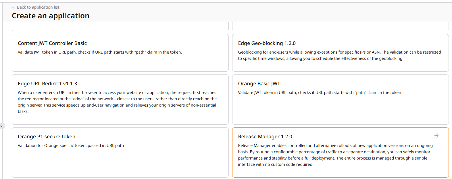 Release Manager enables controlled and alternative rollouts of new application versions on an ongoing basis. By routing a configurable percentage of traffic to a separate destination, you can safely monitor performance and stability before a full deployment. The entire process is managed through a simple interface with no custom code required.