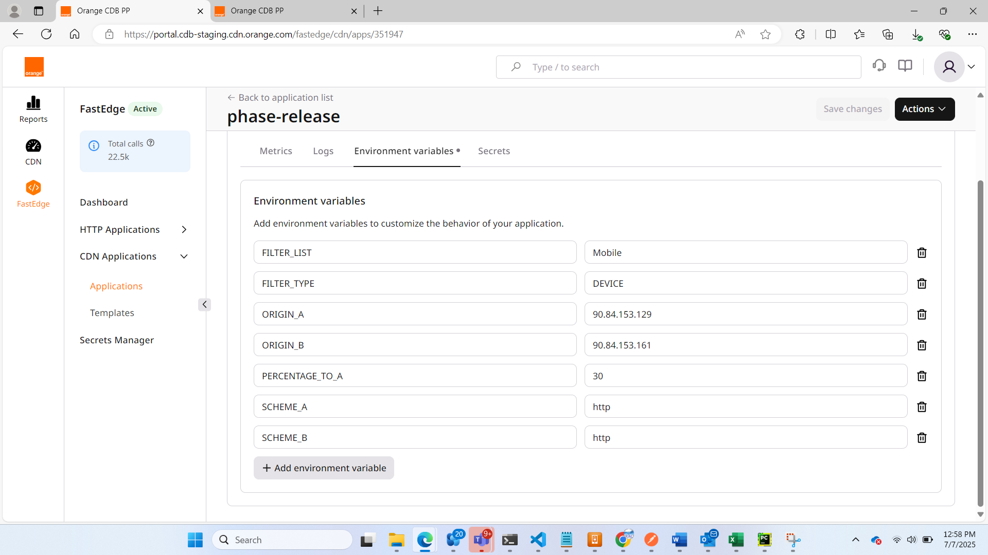 To enable Release Manager, you must configure the following parameters in your FastEdge application. At a minimum, ORIGIN_A and ORIGIN_B are required.