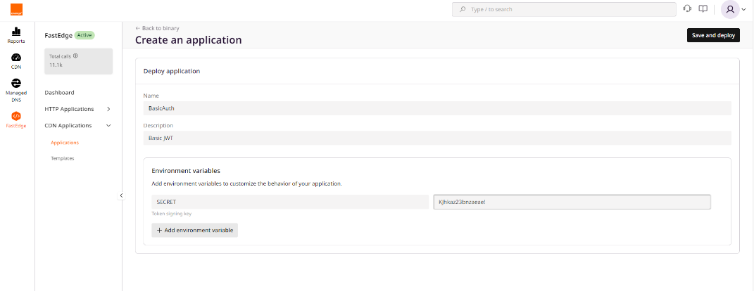 5. Fill the name, the shared that will be used to signed thee token, and click on Save and Deploy