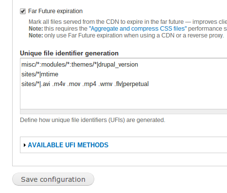 Scroll down and choose Far Future expiration, then click Save Configuration.