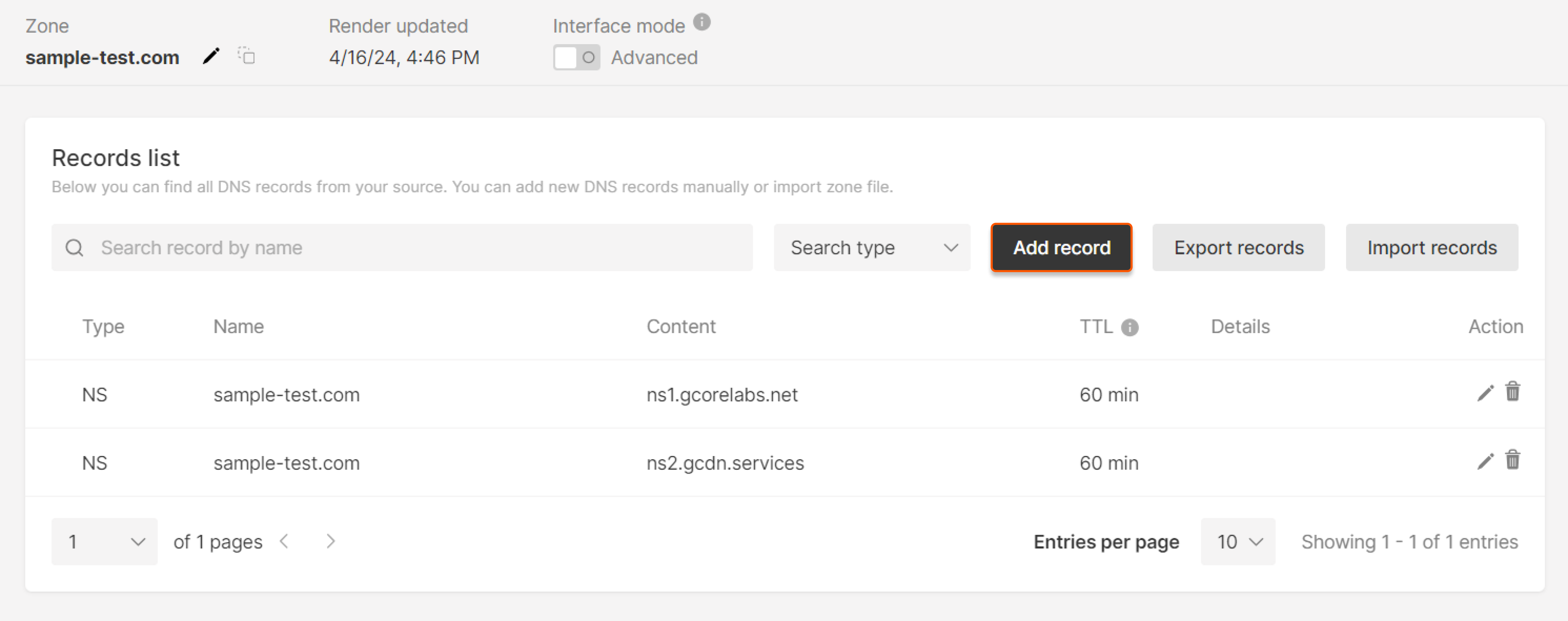 1. Navigate to All zones and select the domain zone for which you want to add records. Or, click the three-dot icon on the right and then click Go to records.