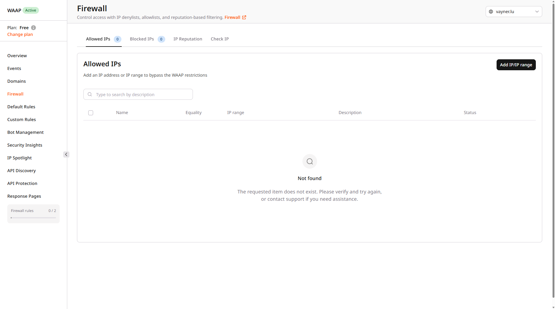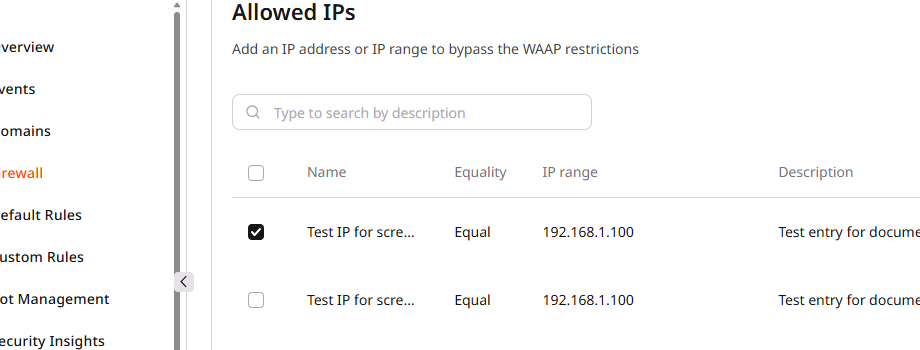 Allowed IPs: Permit specific IPs or IP ranges to access your domain without any restrictions or security checks.
